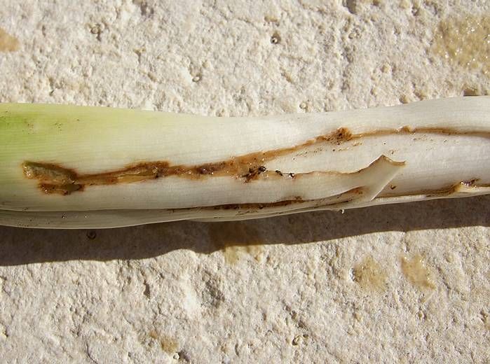 Les dégâts mènent à des pertes de récoltes très élevées car les poireaux sont impropres à la consommation.