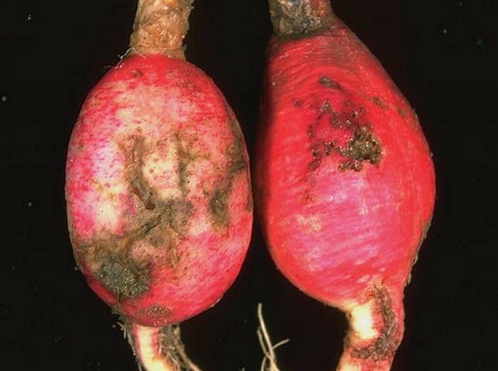 Les larves (figure 1) creusent des galeries dans les racines (figures 2 et 3), qui peuvent remonter jusqu’au pétiole des feuilles et rendent le légume impropre à la consommation. Les dégâts sont toujours importants dans les cultures.