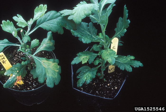 - Sur des végétaux plus âgés, les premiers symptômes apparaissent généralement à l’apex de la plante.