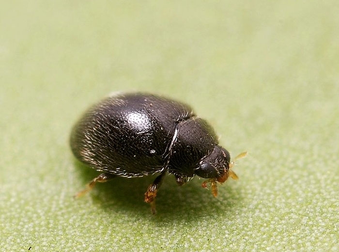 L'adulte qui en émerge est une petite coccinelle noire brillante avec des soies fines jaunes-blanchâtres, d'une taille d'environ 1.2 à 1.5mm.