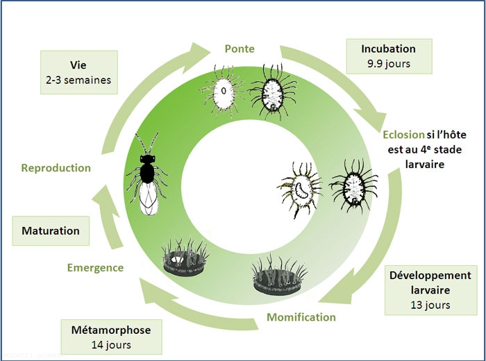 Ci dessus le cycle de développement d'Encasia formosa à 25°C.