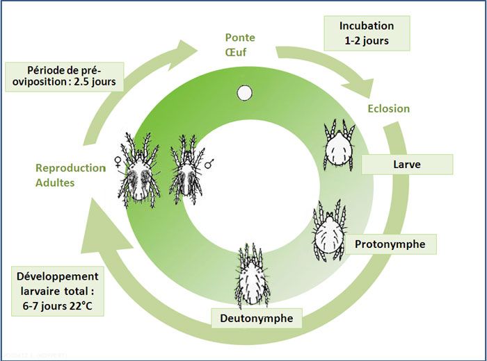 Ci-dessus le cycle de développement d'Amblydromalus limonicus.