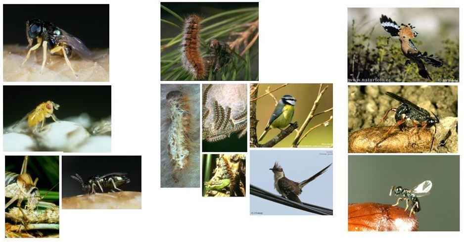 L’utilisation de la lutte chimique a fortement baissé depuis quelques années, notamment parce qu’elle pose des problèmes écologiques. En effet, les substances utilisées ne sont pas sélectives et persistent sur les feuillages pendant une durée assez longue. La lutte chimique peut ainsi détruire également le cortège d’ennemis naturels de la processionnaire du pin (figure 1).