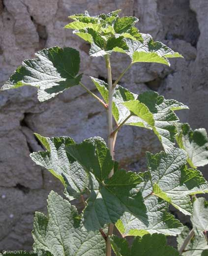 Le groseillier épineux est aussi un arbrisseau. Les feuilles sont de plus petite taille et les rameaux pourvus de longues épines (figure 4). Les fruits sont de grosses baies de couleur rouge sombre ou jaunâtres à maturité (figures 5 et 6). Les fruits sont utilisés en frais principalement pour la cuisine.