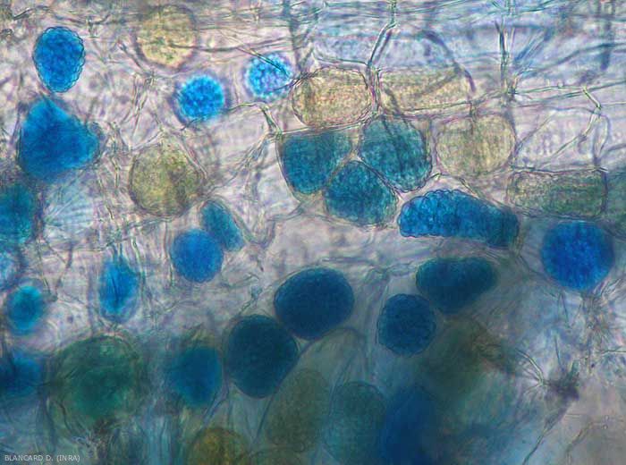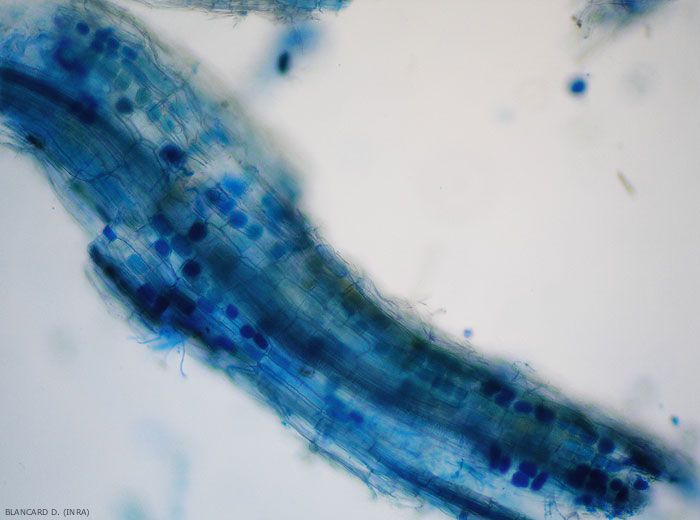 - Plasmodes sporangials également visibles dans les cellules corticales.