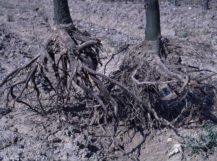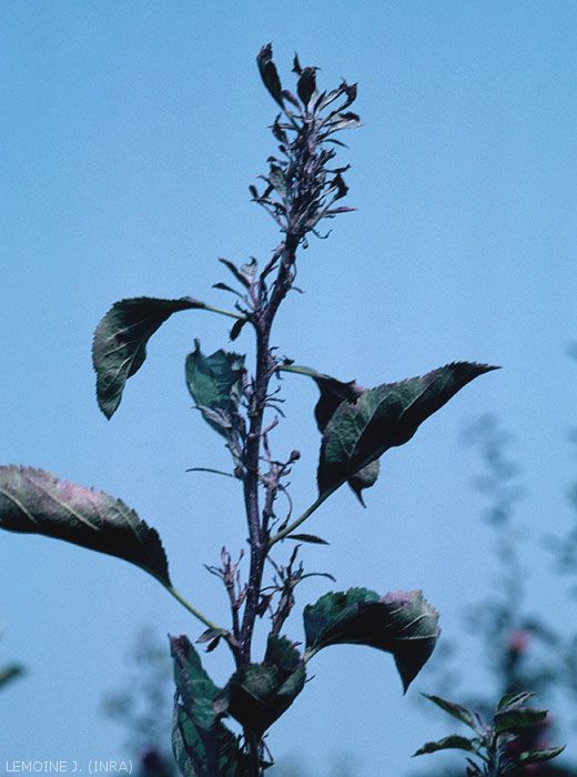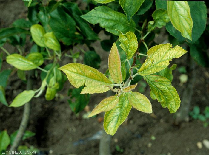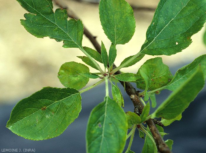 Par ailleurs, les arbres contaminés par le phytoplasme sont plus sensibles à l’oïdium causé par Podosphaera leucotricha.