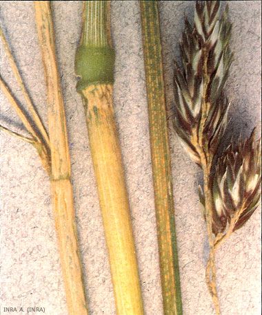 Sans réelle gravité, la rouille du dactyle causée par le champignon Uromyces dactylidis (Basiodiomycota, Pucciniaceae) nécessite pour son cycle complet de développement, un second hôte tel que les renoncules, adventices des cultures.