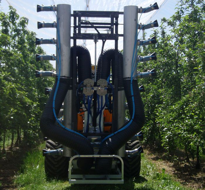 Le choix du matériel est un facteur important pour optimiser l’efficacité des traitements et limiter la dérive (choix du pulvérisateur - Figure 1, du type de flux – radial ou tangentiel –, de la pression de fonctionnement et des buses adaptées au traitement). Le matériel conditionne aussi très fortement le volume de bouillie optimal à appliquer. Se référer aux documents spécialisés.