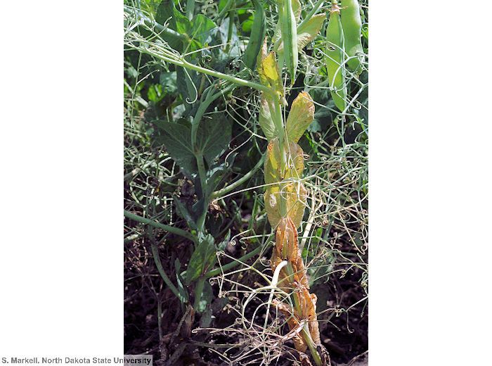 - pour la culture suivante : pratiquer une rotation de 5 ans même si cette rotation ne va pas éliminer le champignon du sol. Eviter de re-cultiver du pois là où des symptômes ont déjà été observés.