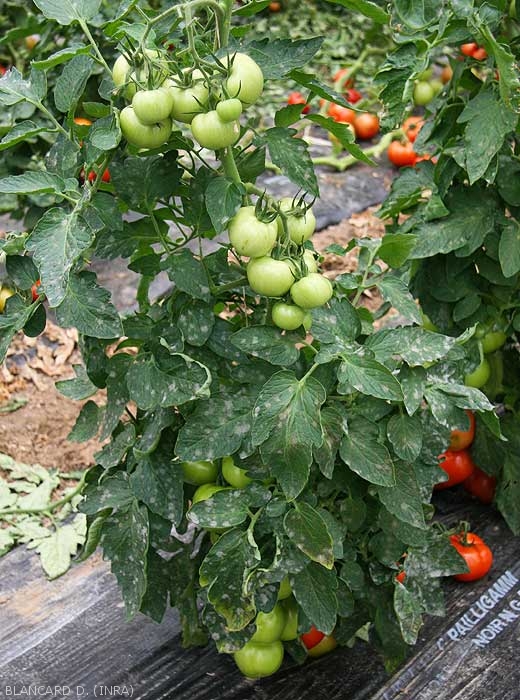 - Conditions favorables : affectionne les ambiances humides et chaudes, notamment les hygrométries égales ou inférieures à 80 % d'humidité ; au-dessus, son développement se réduit graduellement. Les hygrométries excessives entraîneraient une réduction de la gravité de la maladie. Les fumures excessives en azote sensibiliseraient les tissus foliaires.