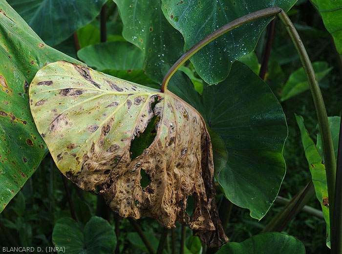 Nécrose et dessèchement des feuilles en cas de fortes attaques (figure 6)