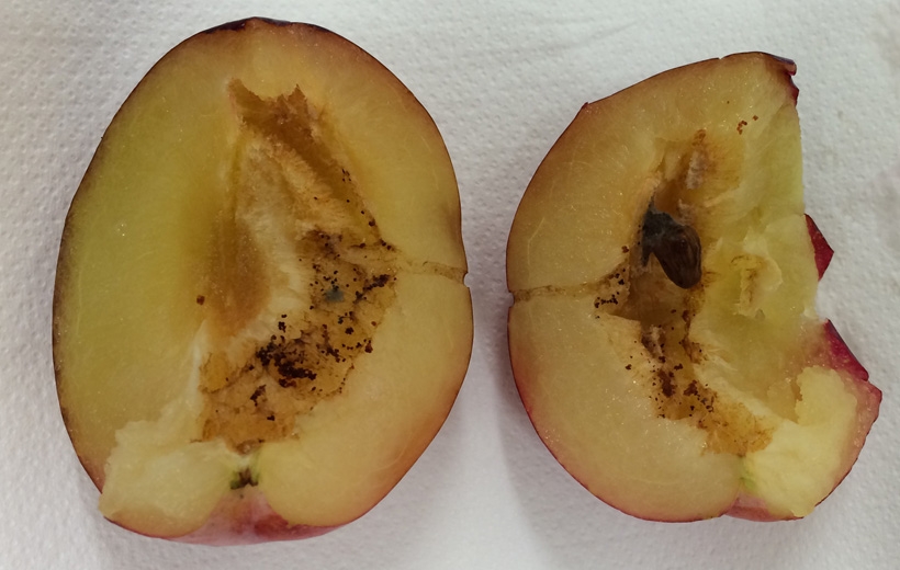 La Tordeuse Orientale du Pêcher (Cydia molesta) fait partie du groupe des chenilles foreuses des fruits que l'on peut rencontrer en verger de prunier.