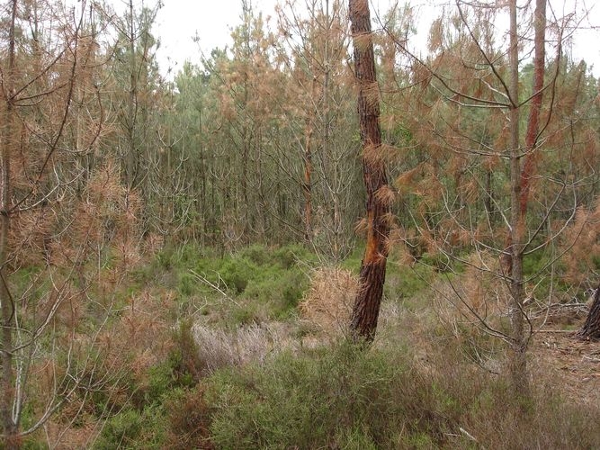 Rhizina provoque des mortalités d’arbres groupés en ronds. Ces taches de mortalités peuvent atteindre exceptionnellement une dizaine d’ares. L’arbre attaqué meurt assez rapidement.