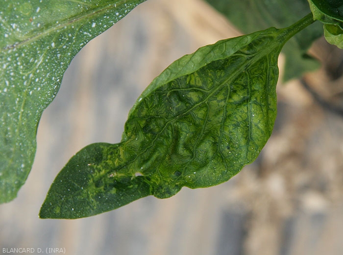 - Mosaïque plus ou moins marquées sur folioles et feuilles(figures 13 et 14-poivron)
