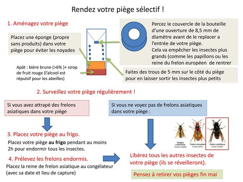 Une bouteille en plastique avec le goulot retournée (bière + sirop de cassis) de début mars à fin mai. N’hésitez pas à multiplier les pièges dans vos jardins!