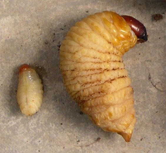La chenille de P. archon peut être confondue avec une larve de coléoptère. Cependant la forme est différente : la chenille est plutôt droite pour le papillon palmivore alors qu'elle est complètement arquée pour le rhinocéros et ne possède pas du tout de patte chez le charançon rouge (fig. 3, 4, 5 & 6).
