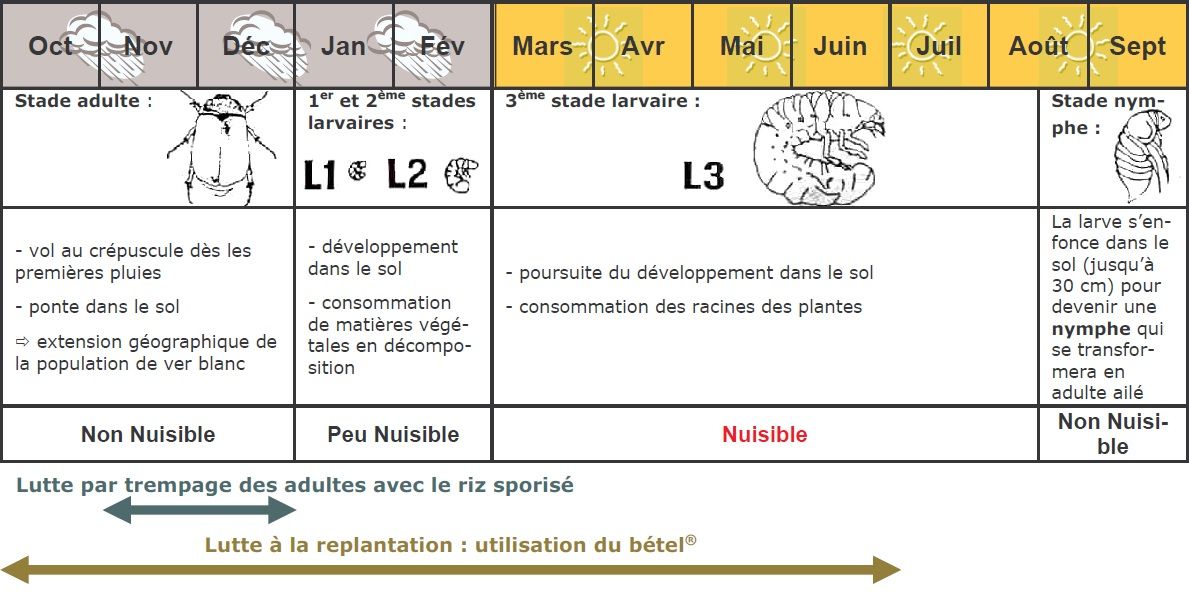 Pour plus de précisions consulter la fiche du ver blanc sur Tropileg.