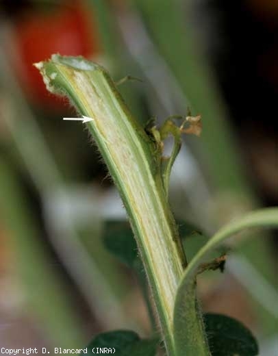 Les flétrissements foliaires précédemment décrits ne sont pas toujours suffisants pour diagnostiquer cette bactériose, il faut aussi que soient présents d'autres symptômes plus spécifiques sur les plantes malades :