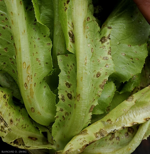 Ce champignon se maintient dans le sol sur les débris végétaux. Il se conserverait également sur les semences et sur un certain nombre d'hôtes, notamment la laitue sauvage : Lactuca serriola. Il se développe durant les périodes humides, en présence d'eau libre sur les feuilles. Les conidies (figures 6 et 7) présentes à la surface du limbe germent et pénètrent par les stomates. Il apprécie les températures proches de 25°C. Dans ces conditions, il envahit rapidement les tissus : des symptômes sont déjà visibles au bout de 3 jours et il sporule 5 jours après les contaminations. Les spores formées sont libérées dès que l'hygrométrie s'abaisse. Elles sont aussi disséminées par les éclaboussures à la suite de pluies ou d'irrigations.