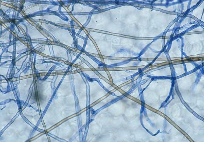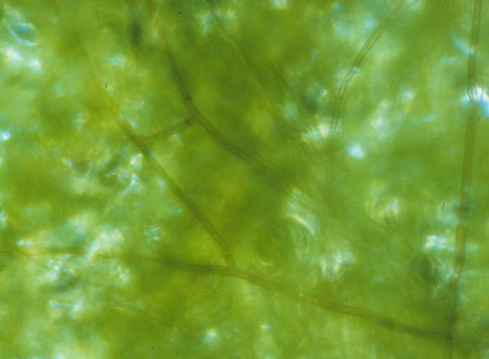Structures permettant de les identifier sur et/ou dans les tissus altérés Oospores et chlamydospores visibles dans les cellules racinaires (figure 1). Mycélium épiphyte brun cloisonné, montrant une constriction au niveau de ses ramifications