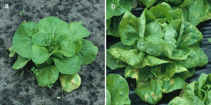Attention : bien que de nombreuses variétés de laitues soient résistantes à B. lactucae, des souches capables de contourner ces résistances (des races) sont présentes sur le terrain et en perpétuelle évolution. Des symptômes de mildiou peuvent donc être observés sur un tel matériel végétal.