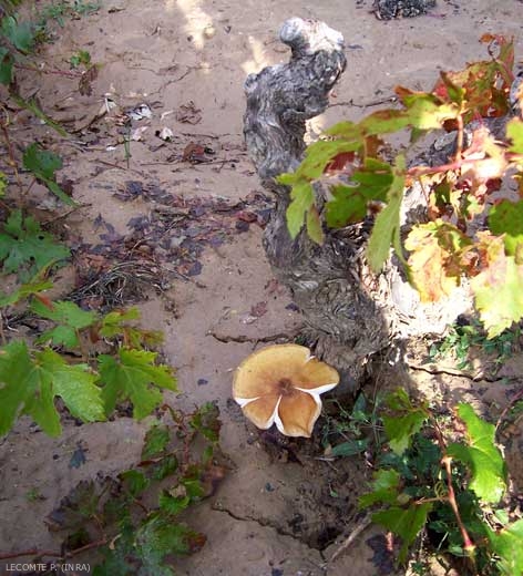 * Soulignons qu'à la fin des années 70, l'espèce A. mellea qui regroupait alors tous les champignons responsables de pourridiés sur les diverses espèces ligneuses, a été éclatée en plusieurs espèces différentes, dont 5 pour l'Europe. Ces espèces diffèrent notamment par leur gamme d'hôtes et leurs exigences écologiques. Le nom d'A. mellea a été gardé pour l'armillaire inféodé aux feuillus, dont la vigne. Armillaria ostoyae, qui attaque les résineux, quant à lui n'est jamais rencontré sur vigne. Ceci donne l'explication des observations faites par les anciens qui constataient que les plantations de vigne sur des défriches de résineux étaient moins attaquées que celles faites sur des défriches de feuillus.