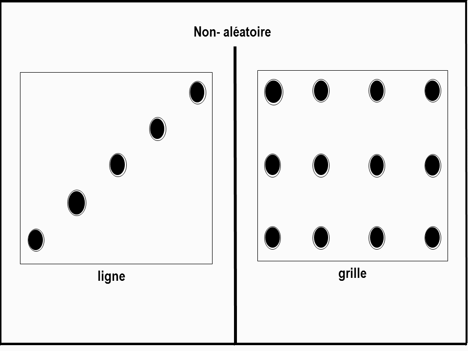 | ligne(s) parallèle(s) aux côtés de la parcelle | ligne(s) diagonale(s) à la parcelle transect |