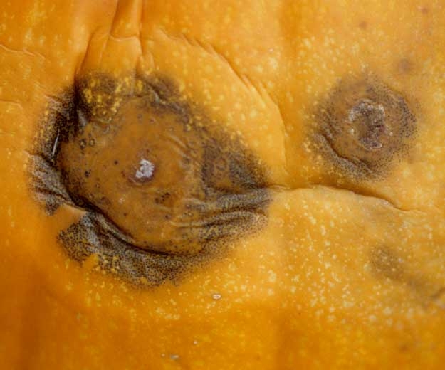 Une fois en place dans les organes qui son plus ou moins réceptifs en fonction de leur âge ou leur maturité, le mycélium du champignon envahit les tissus, émet diverses enzymes (pectine lyase...), et des symptômes apparaissent au bout de quelques jours, entre 3 et plus d'une dizaine de jours en fonction des cucurbitacées et des conditions environnantes.