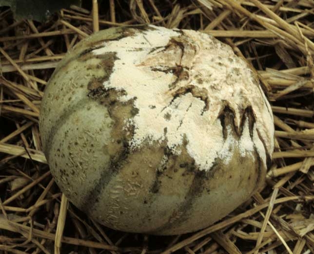 Les fruits affectés présentent une large lésion s'initiant au niveau des cicatrices pédonculaire (figures 1 et 2) ou stylaire (figure 3), sur le coté des fruits ou à partir d'une blessure comme un éclatement par exemple. Les tissus affectés prennent une teinte vert sombre dans un premier temps (figure 1), brunissent légèrement, tandis qu'une pourriture aigre se met en place progressivement.