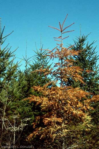 Rougissement physiologique d'une plantation de douglas (© J.-P. Grandjean)