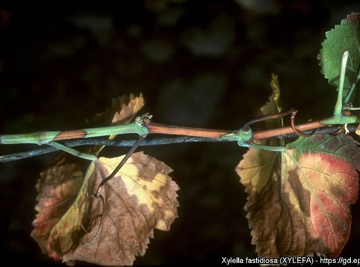 I ramoscelli colpiti crescono irregolarmente, rimanendo verdi in alcuni punti. Nelle stagioni successive, le viti colpite germogliano più tardi e producono tralci clorotici e rachitici. Raramente sopravvivono per più di uno o due anni.