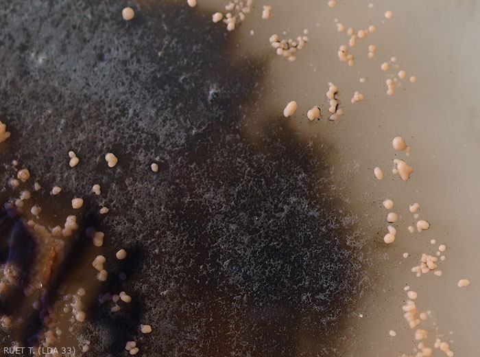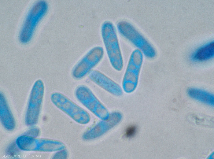 - una forma sessuale o teleomorfa sotto forma di periteci più o meno sferici e raggruppati. All'interno di questi periteci, possiamo osservare aschi e ascospore .