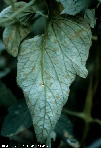 La Passalora fulva è un fungo parassita quasi prevalentemente fogliare . Provoca macchie da verde chiaro a giallo pallido , con contorni diffusi, localizzate piuttosto sulle foglioline delle foglie inferiori (Figura 1). Una peluria, inizialmente biancastra, poi violacea tendente al marrone oliva, ricopre gradualmente le macchie sulla pagina inferiore del lembo fogliare (figura 2). Alla fine, i tessuti al centro delle macchie diventano marroni, necrotizzano e si seccano mentre le foglie si arricciano. In condizioni molto favorevoli, pag fulva sporulates anche sulla superficie superiore della pala, che copre più o meno (figura 3). La malattia si diffonde quindi alle parti superiori delle piante mentre le intere foglie vecchie alla fine si seccano completamente e talvolta cadono. Anche lo stelo può essere colpito .