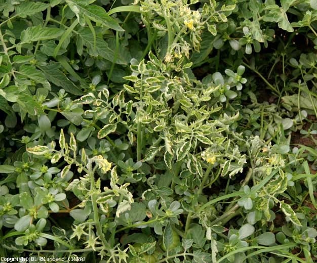 Generalmente le piante colpite dal virus TYLCV, un Begomovirus strettamente dipendente dal floema, vedono la loro crescita rallentata o addirittura bloccata (Figure da 1 a 4). Assumono un aspetto gracile e cespuglioso, a causa dello sviluppo di numerosi ascellari, e della riduzione della lunghezza degli internodi. In caso di infezioni precoci, rimangono nane e non producono frutti.