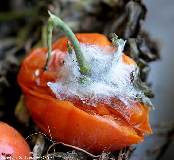 Lesioni umide e morbide che si diffondono rapidamente ai frutti per lo più maturi. Il tessuto interessato si liquefa e alla fine collassa, la cuticola si divide (Figura 1). Si possono osservare flussi di succo. Il micelio del fungo invade i tessuti, ricoperto da una muffa da biancastra a grigiastra (Figure 2 e 3). Questo stampo è costituito dal micelio, sporocistofori e sporocisti di questo Zigomicete. A lungo termine, sui tessuti danneggiati si formano numerosi corpi fruttiferi piuttosto aerei, a “capocchia di spillo nere” (figure 4 e 5).