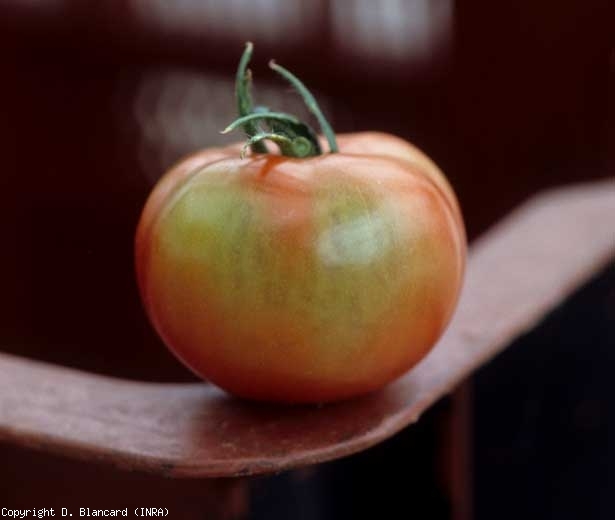 Aree di varia estensione dal verde al giallo, che compaiono sui frutti maturi (Figure da 1 a 3), di consistenza soda e li rendono inadatti alla commercializzazione. In altre parole, maturazione parziale del frutto a macchie ( maturazione a chiazze ) che si verifica piuttosto nella zona del picciolo. Un taglio trasversale nei frutti permette di confermare la loro parziale maturazione, nonché l'imbrunimento di alcuni vasi del pericarpo nelle zone ancora verdi ( imbrunimento interno ).