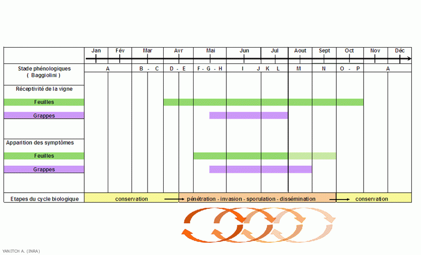 Aggiungiamo che queste uova invernali sono in grado di mantenersi per diversi anni nei terreni viticoli. Le contaminazioni primarie possono avvenire durante tutto il periodo vegetativo della vite.