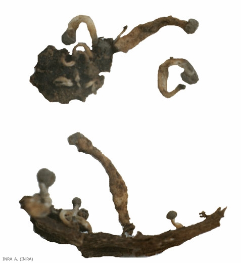 Rosellinia necatrix può produrre due tipi di corpi fruttiferi durante lo sviluppo.