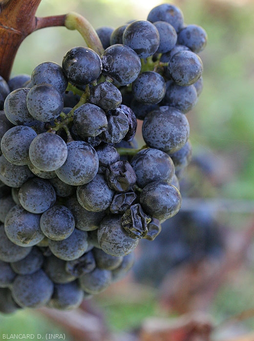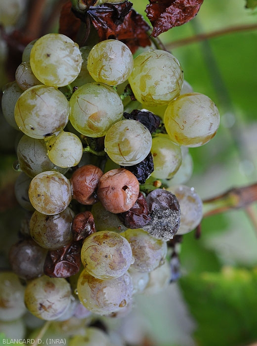 - Rhizopus stolonifer . Questo fungo poco conosciuto si presenta molto sporadicamente in vigna; è caratterizzato dalla produzione di corpi fruttiferi di colore nero "a capocchia di spillo".