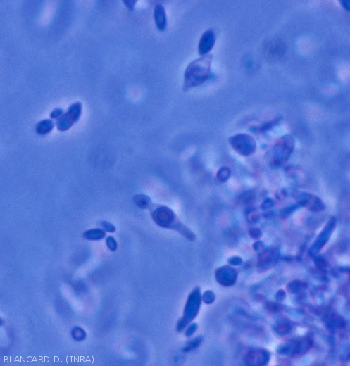 • Kloeckera apiculata : cellule isolate, in coppia o occasionalmente in gruppi di 3-4 cellule (Figura 1). La loro forma ellissoidale e appuntita alle estremità conferisce loro l'aspetto di un limone le cui dimensioni sono dell'ordine di 1,4-5,3 x 2,6-12,2 µm. La formazione di una nuova cellula viene effettuata dai poli. Le cellule ovali di Hanseniaspora uvarum hanno un'estremità appuntita. Isolati o in coppia, si moltiplicano per gemmazione bipolare (Figura 2).