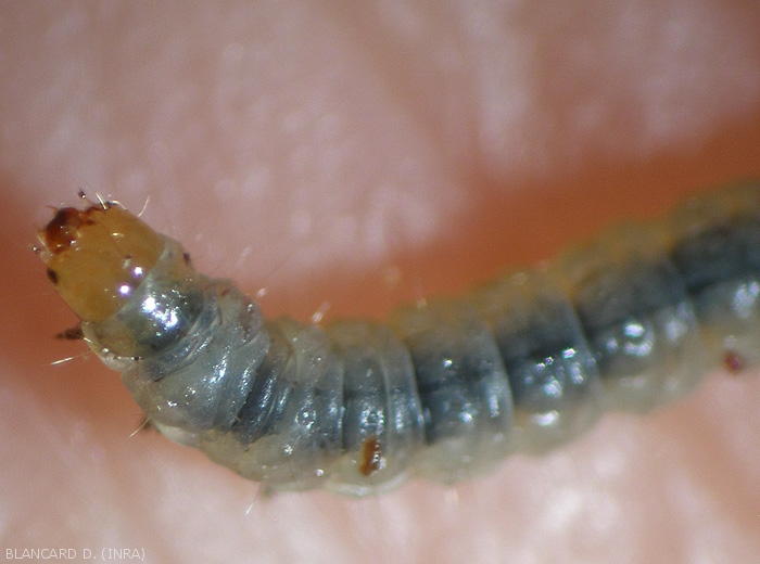 Cinque stadi larvali hanno luogo prima della pupa. Per lo stesso stadio, le dimensioni del bruco possono variare a seconda della quantità e della qualità del cibo disponibile. La capsula della testa, tuttavia, è la parte più costante del corpo. La sua parte più ampia viene misurata per caratterizzare gli stadi larvali (figura 7). Per questo è necessario disporre di un sistema di misurazione micrometrico associato ad esempio ad una lente di ingrandimento binoculare.