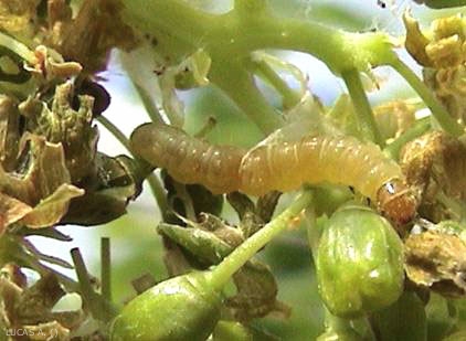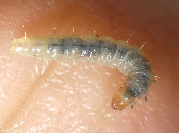- I bruchi hanno la testa e il torace giallo-marrone (Figure 3-6). La loro dimensione prima della pupa è inferiore a 2,5 cm.