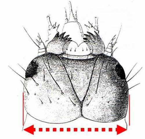 - Maschi e femmine hanno lo stesso colore e dimensioni molto simili. D'altra parte, l'esame dell'estremità dell'addome permette di riconoscere il sesso. L'estremità ventrale della femmina assume la forma di un canale di scolo attraverso il quale fuoriesce l'organo che depone le uova: l'ovulo. L'estremità è più sottile nel maschio, e forma come 2 labbra unite fornite di una notevole pelosità (figura 11). La pigmentazione ventrale marrone si trova anche nelle femmine, l'addome è più chiaro nei maschi.