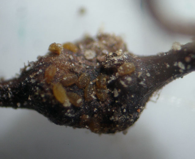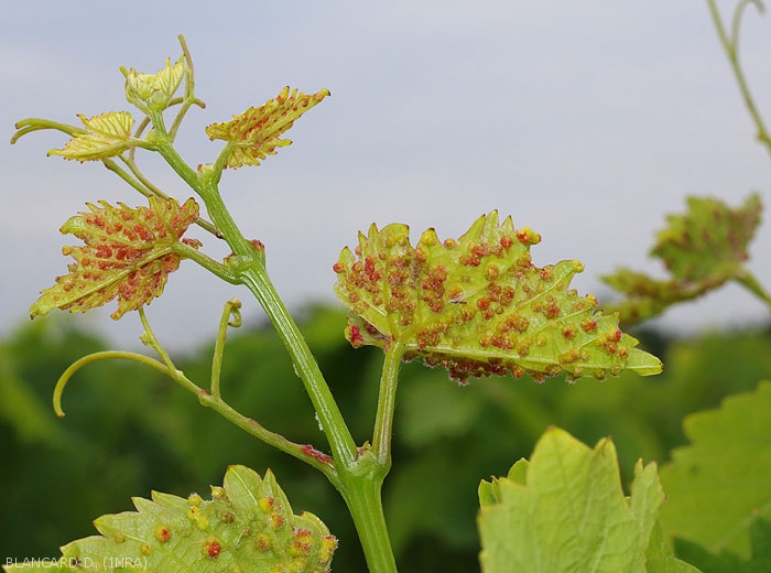 A livello radicale si osserva anche sulle radichette la presenza di noduli legati a punture di insetti; la loro frequenza varia più o meno a seconda della specie di Vitis considerata. Sulla varietà europea, Vitis vinifera , gli attacchi aerei sono considerati eccezionali. Gli attacchi si verificano principalmente a livello delle radici che presentano noduli sulle radichette e tuberosità sulle radici più vecchie.