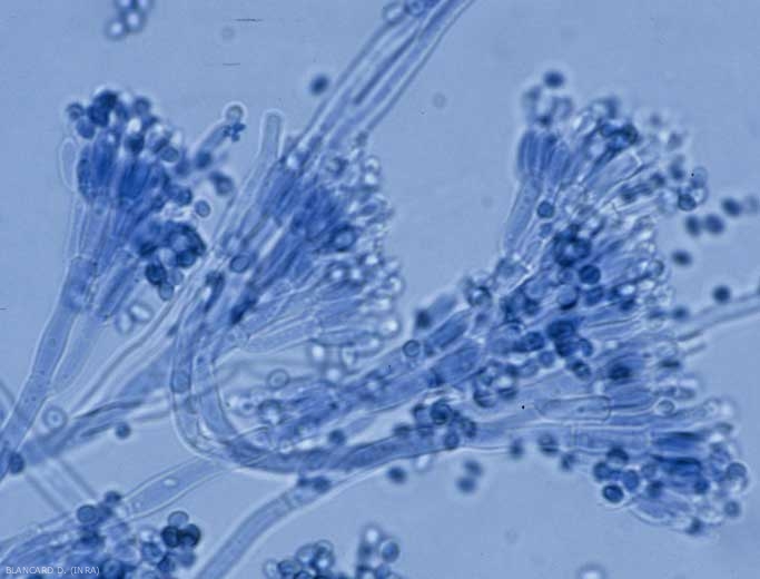 Diversi tipi di ramificazioni sono possibili in Penicillium spp .. Alcuni sono monoverticillati, o non ramificati, altri sono biverticillati, che corrisponde alla comparsa di un livello di ramificazione, o addirittura triverticillati (2 livelli di ramificazione) ??. Questo carattere contribuisce alla discriminazione tra le specie. È anche all'origine dell'aspetto "a pennello" o "a pennello" dei fruttiferi del Penicillium corpi osservato con una lente d'ingrandimento binoculare o con un microscopio. Ad esempio, P. expansum è triverticillato (figura 3) mentre P. frequentans è monoverticillato.
