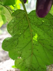 Les piqûres nutritionnelles sont à l'origine des ponctuations chlorotiques et peuvent Déformer les jeunes folioles (figures 9 et 10). Une réduction de la croissance des jeunes pousses, voire des plantes, peut être constatée. En plus des colonies de pucerons, on observe bien souvent des mues blanches et la présence de miellat à la surface des organes aériens de la tomate, sur lequel se développe la Fumagine (sooty mold). Rappelons que cette dernière peut avoir plusieurs conséquences, notamment une réduction de la photosynthèse et de la respiration foliaire et la souillure de fruits rendus ainsi non commercialisables.