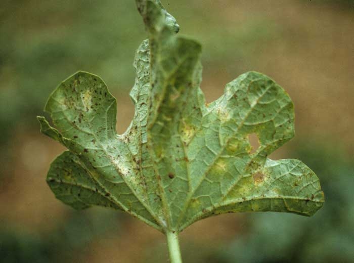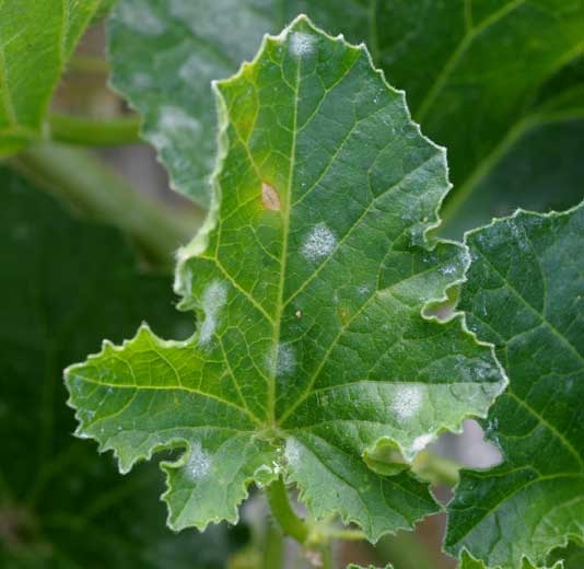 *Il convient de signaler que sur les espèces ou les variétés de Cucurbitacées peu sensibles à l'oïdium les symptômes seront atypiques et se matérialiseront par le développement de taches jaunâtres aux endroits où le champignon aura quelques difficultés à s'installer (figures 6 et 7).