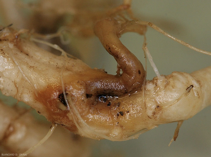 Après avoir arraché et lavé soigneusement les systèmes racinaires de quelques plantes malades, on constate qu'ils sont plus ou moins altérés