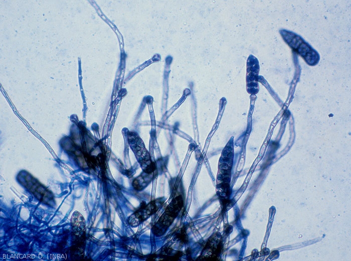Certaines taches peuvent confluer provoquant à terme des dégâts très importants. <i><b>Stemphylium solani</b></i> (stemphyliose, grey leaf spot)