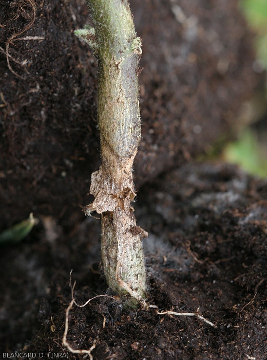 Pourritures foliaires et pétiolaires sur carotte..  <i>Rhizoctonia solani</i>  (Rhizoctone foliaire - web-blight)